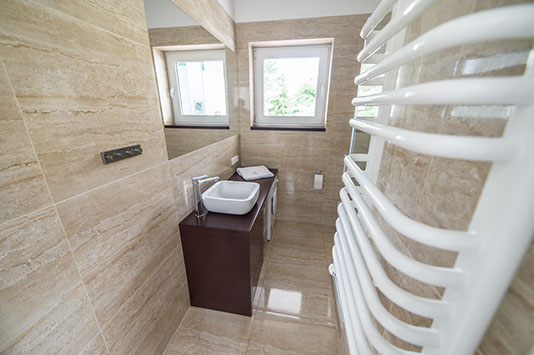 Podłoga w apartamencie wyłożona jest kaflami imitującymi stare drewniane deski. W łazience zamontowana została wysokiej klasy glazura oraz armatura. Apartament wyposażony jest również w wysokiej klasy sprzęt AGD oraz RTV.