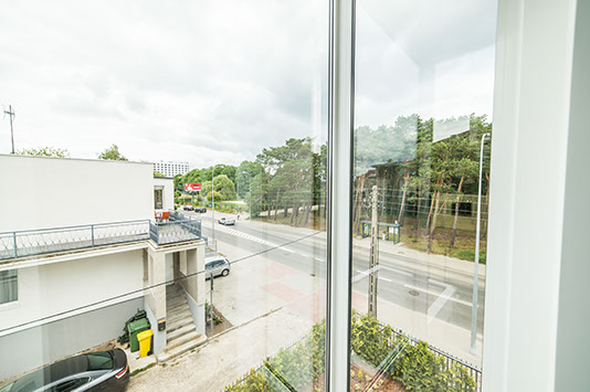 W apartamencie jest dostęp do sieci WiFi. Z apartamentu jest wyjście na bardzo duży balkon położony od strony zachodniej z krzesłami ogrodowymi i stolikiem dla 4 osób. Okna z kuchni i salonu wychodzą na piękny pas lasu oddzielający miasto od plaży. Apartament wyposażony jest w klimatyzację (za dodatkową opłatą).